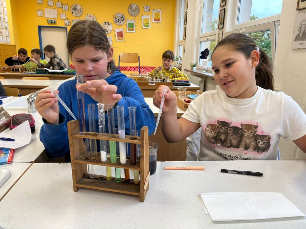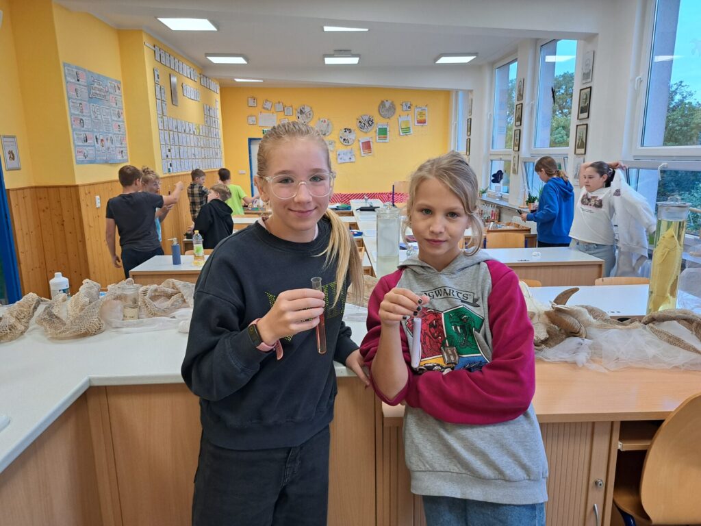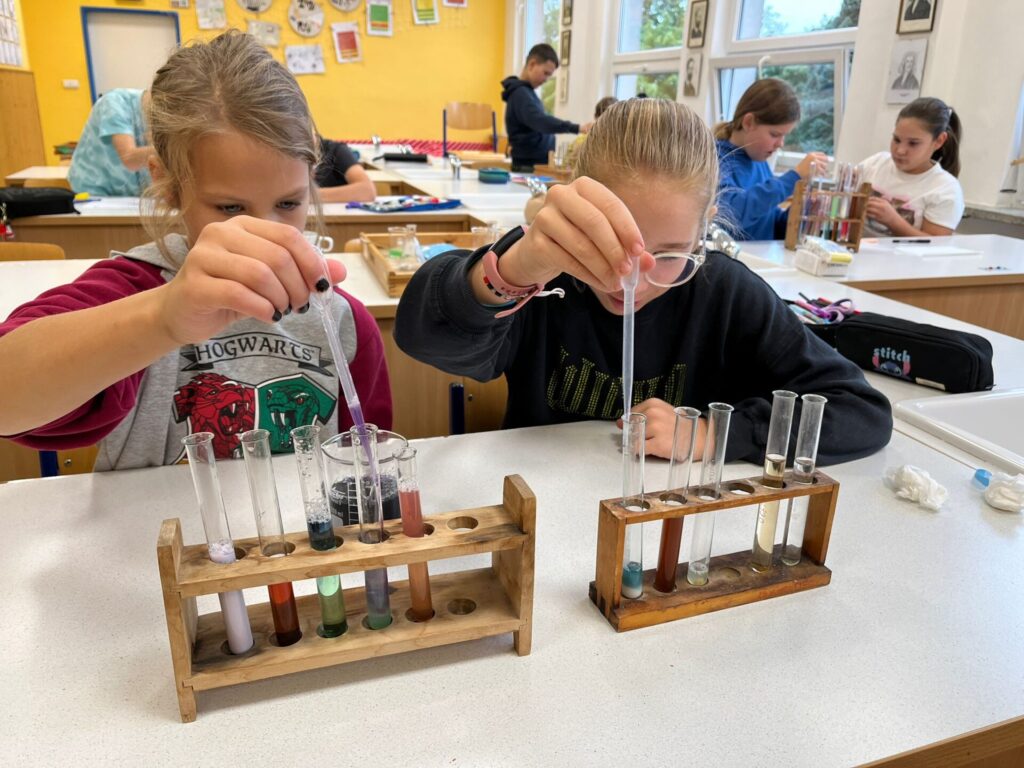 Poté si připravily sadu různých ingrediencí – vitamín C, jedlou sodu, prostředek na nádobí, mýdlo, Kofolu či mléko. Do každé zkumavky nalily „tajemný elixír“ a s jiskrami v očích pozorovaly, jak se jejich lektvary barví do různých odstínů a jak se mění před jejich očima.