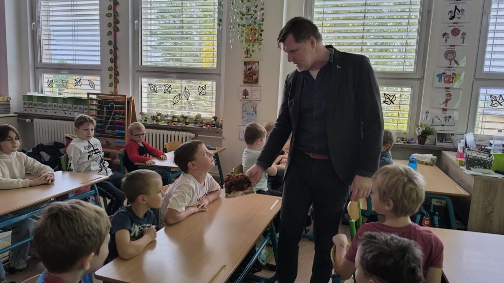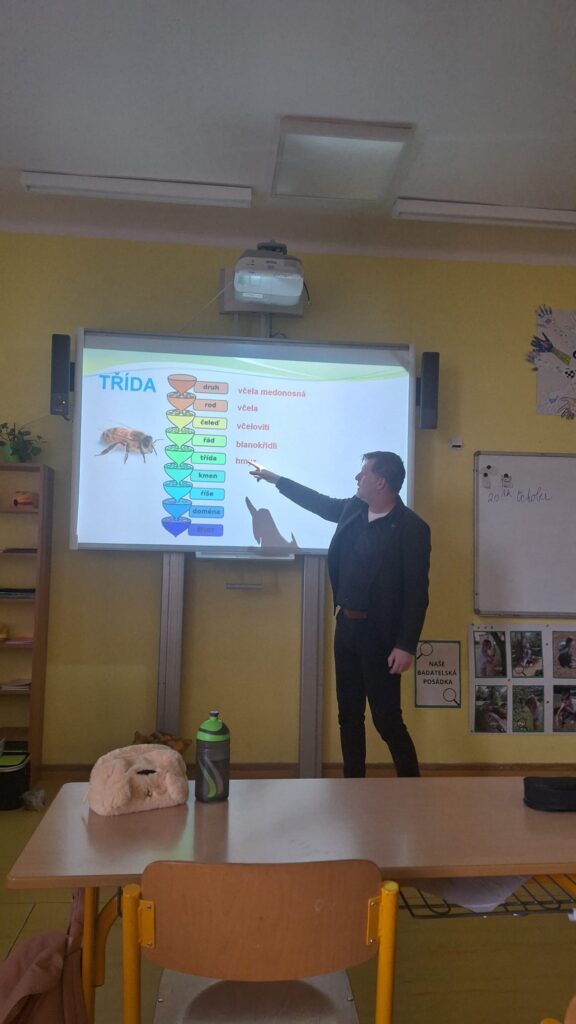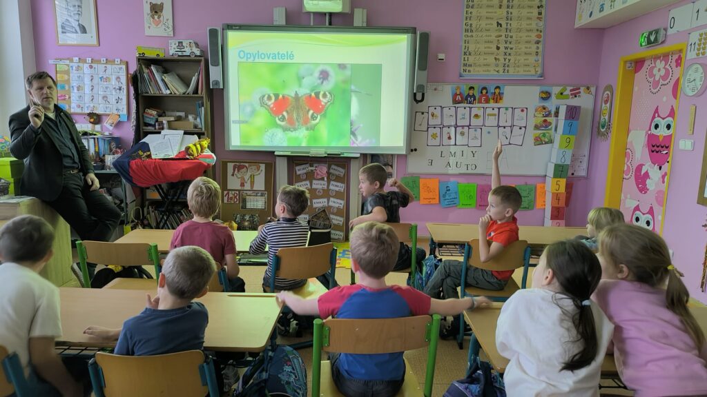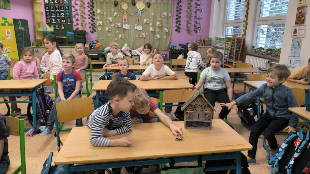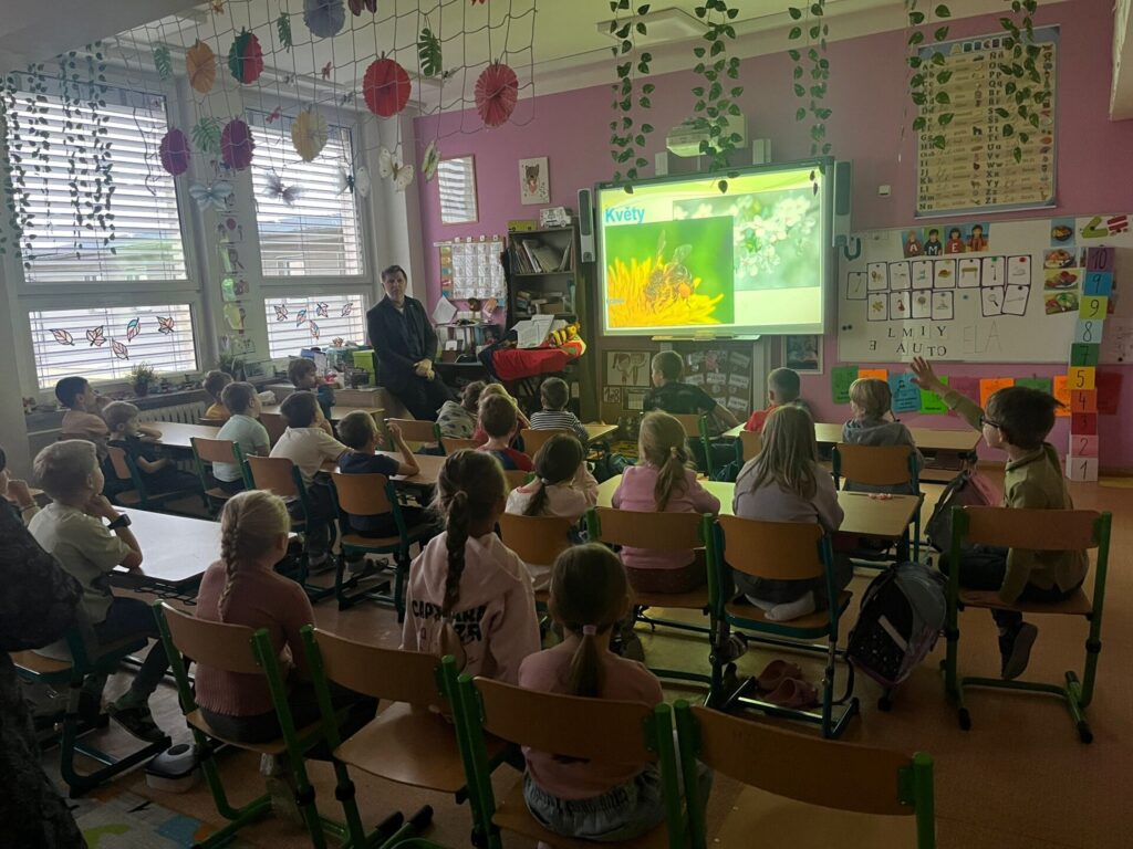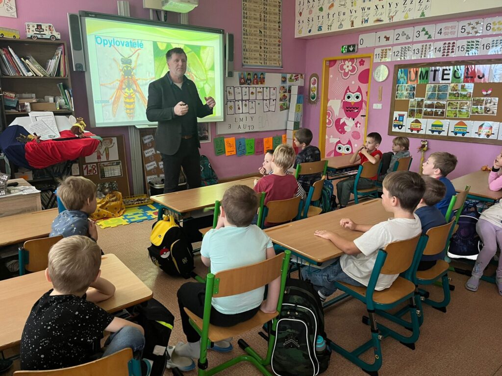 Prvňáčci se účastnili programu „Kam mizí opylovatelé a proč je musíme chránit?“ Zábavně a názorně poznali, jakou roli hrají včely, čmeláci a další opylovatelé v přírodě, a co může každý z nás udělat pro jejich ochranu. Nechyběly ukázky a možnost nahlédnout do hmyzích domečků.