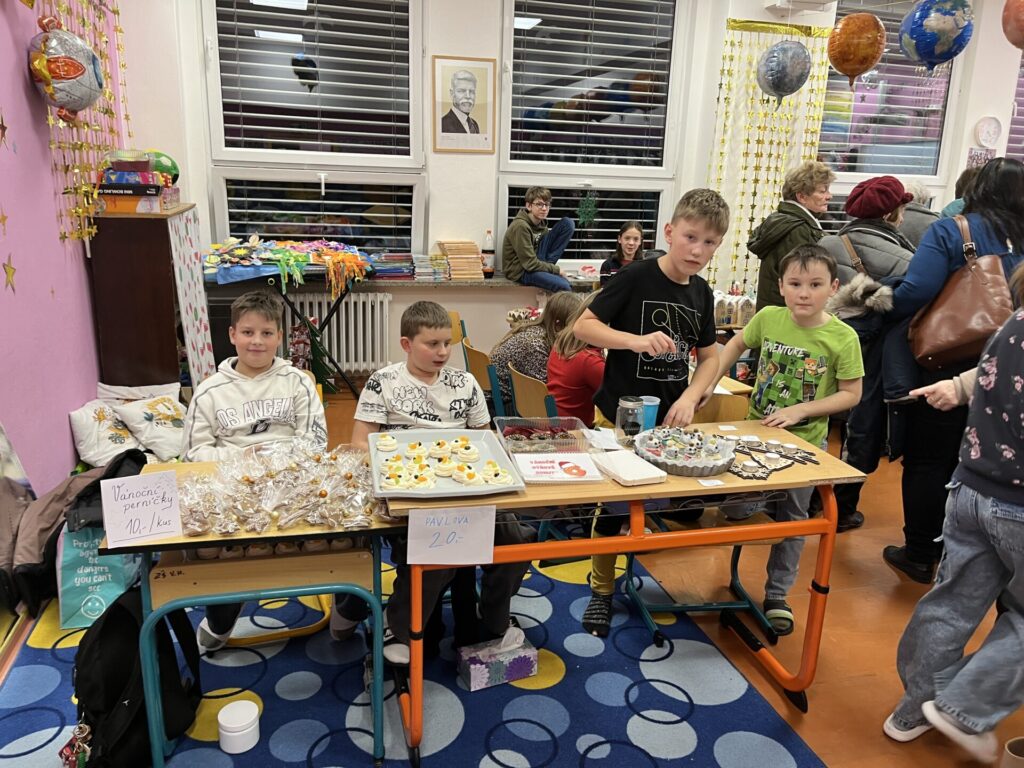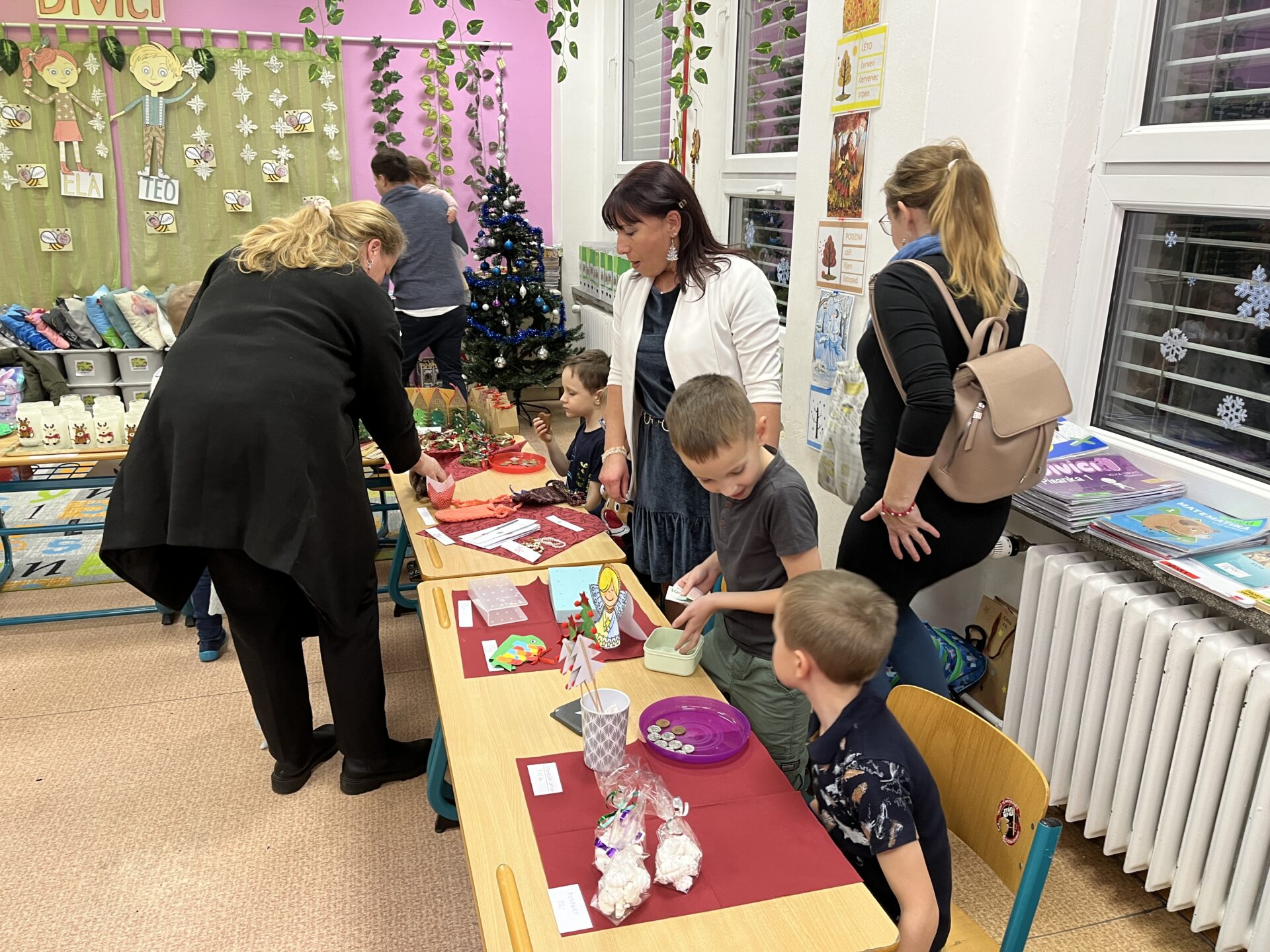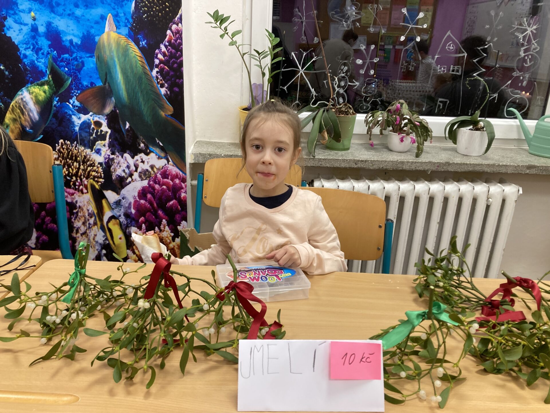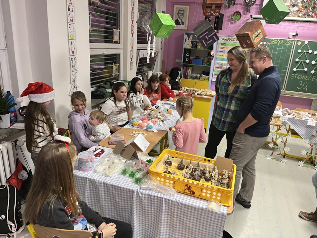 Děti se proměnily v prodejce všelijakého vánočního zboží. Ke koupi byly vánoční sladkosti, věnce, ozdoby, svícny, ručně vyráběné šperky a spoustu dalšího.