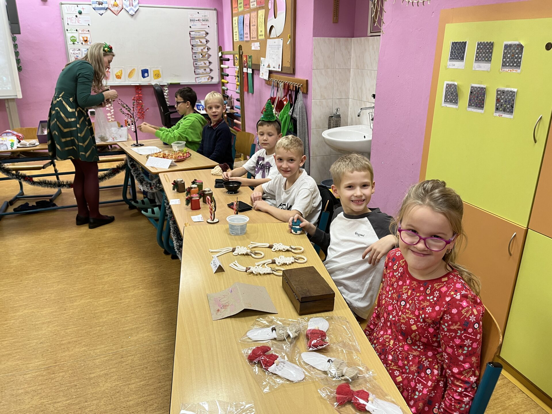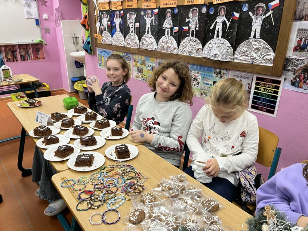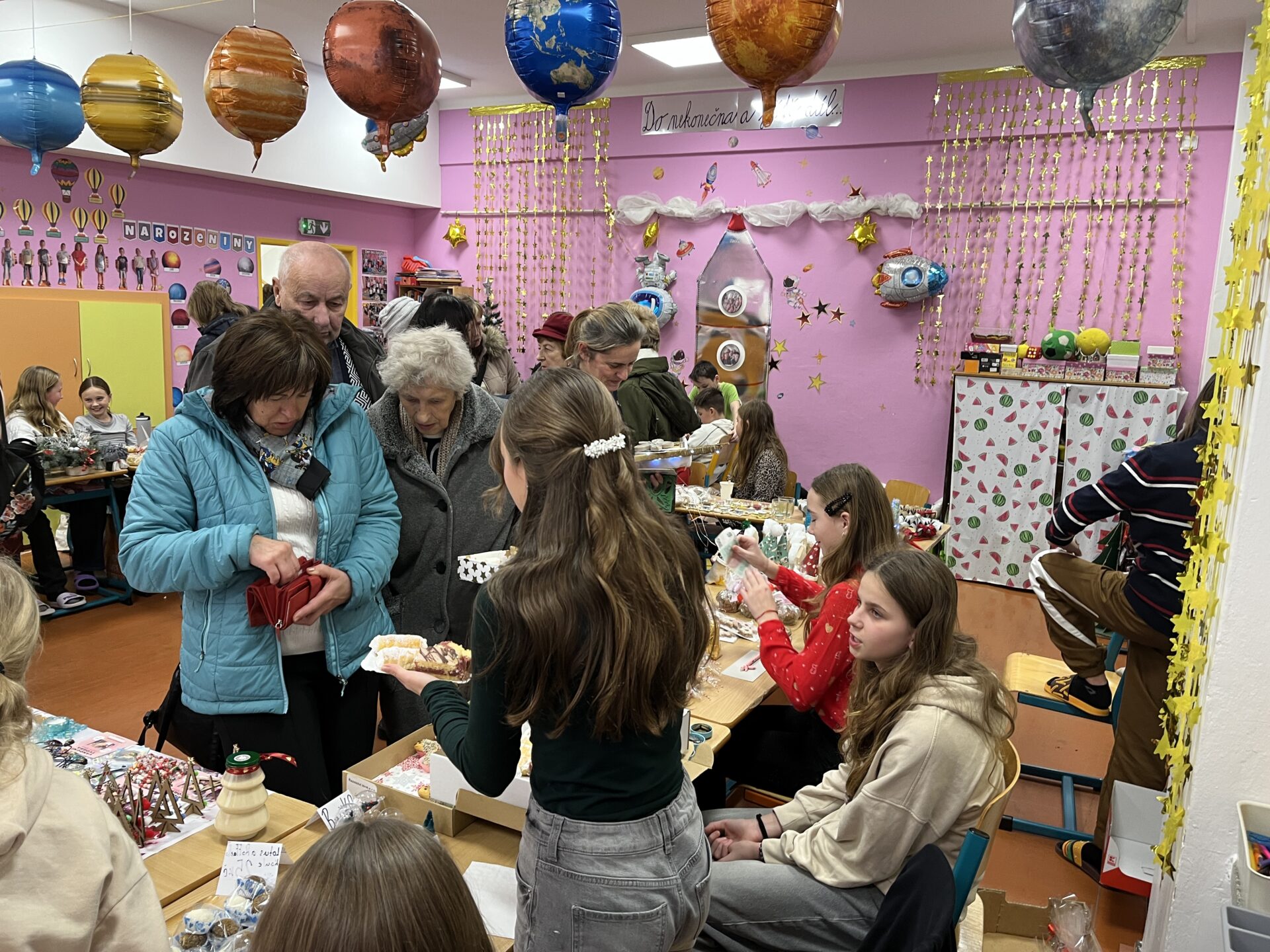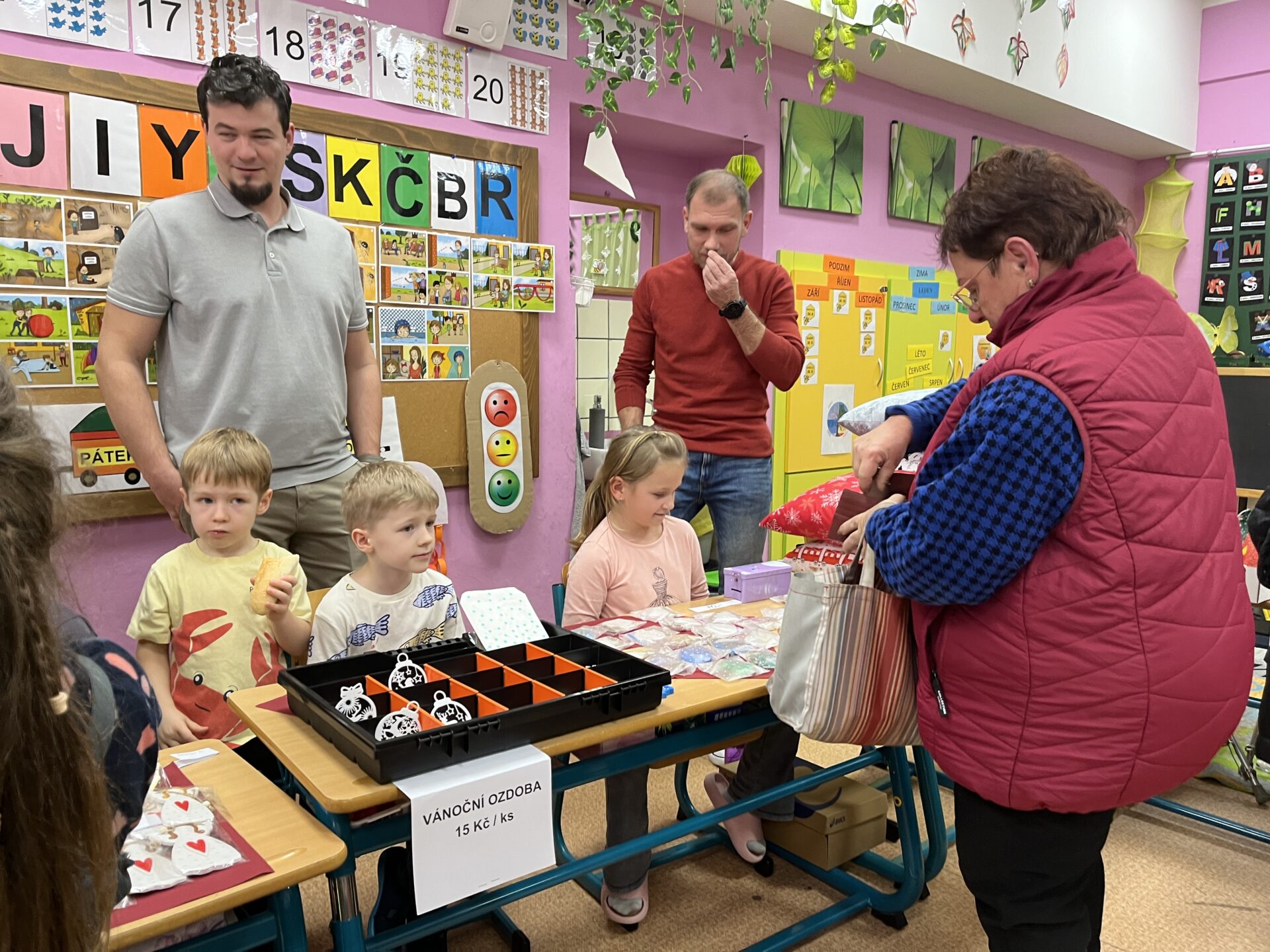 Děti se proměnily v prodejce všelijakého vánočního zboží. Ke koupi byly vánoční sladkosti, věnce, ozdoby, svícny, ručně vyráběné šperky a spoustu dalšího.