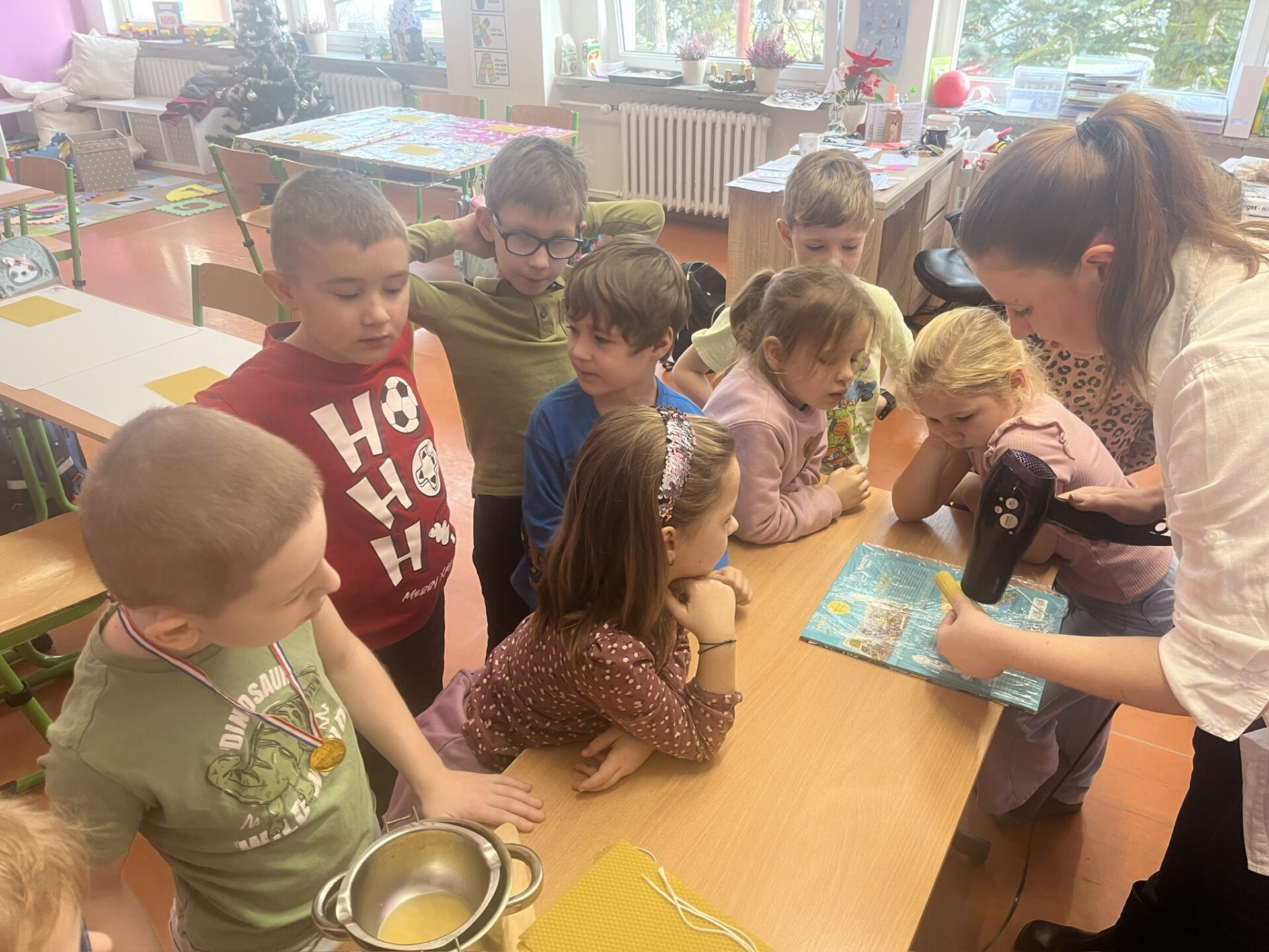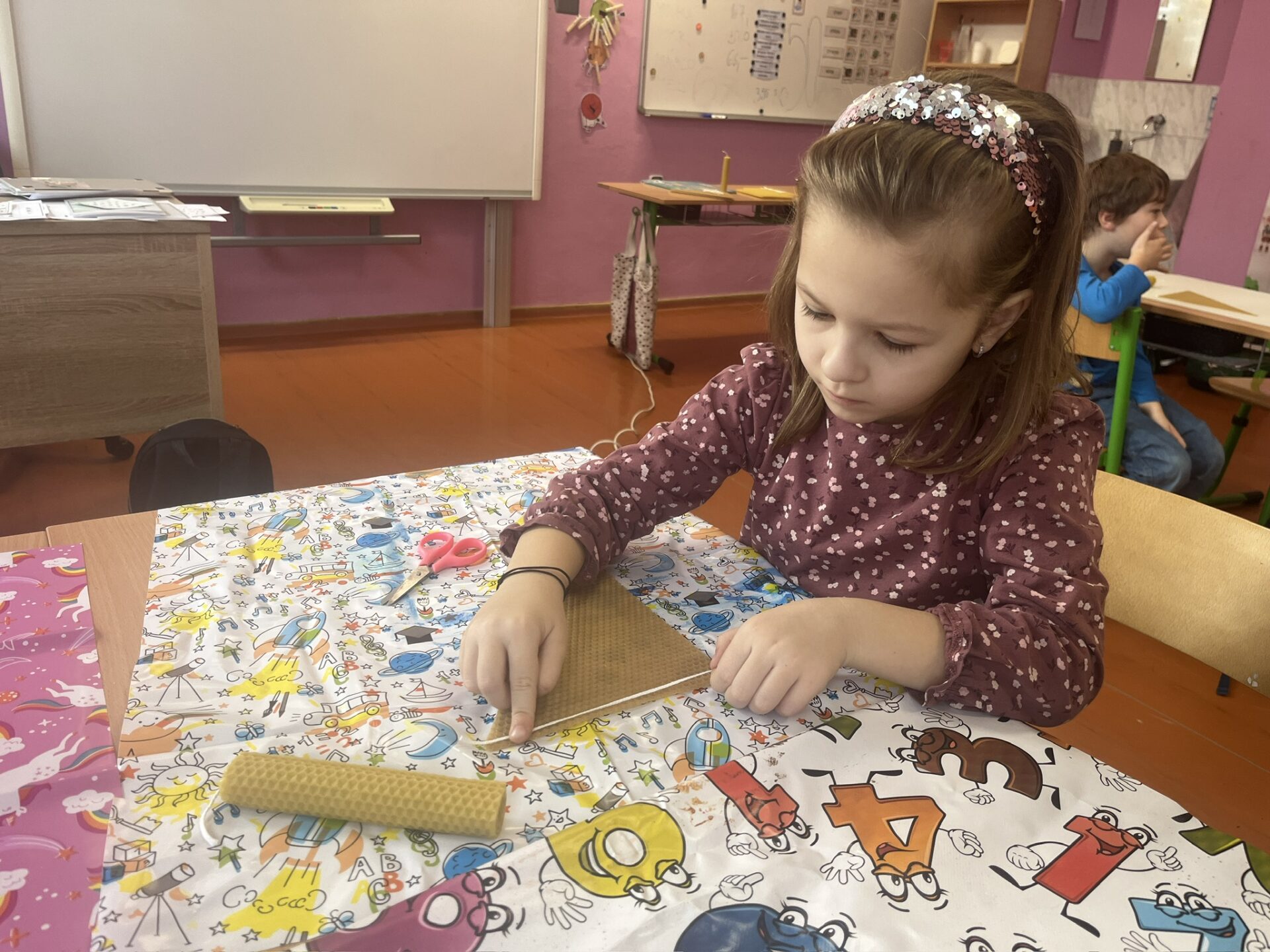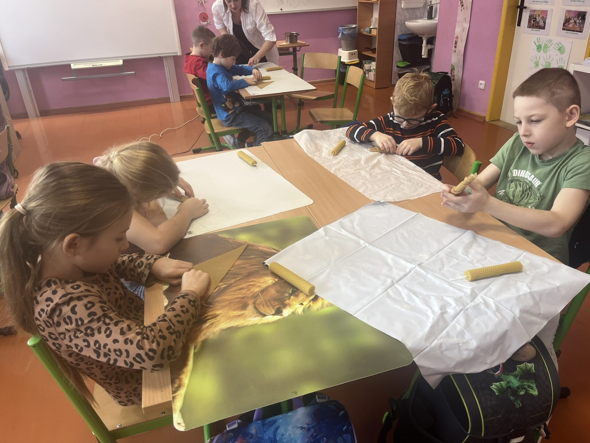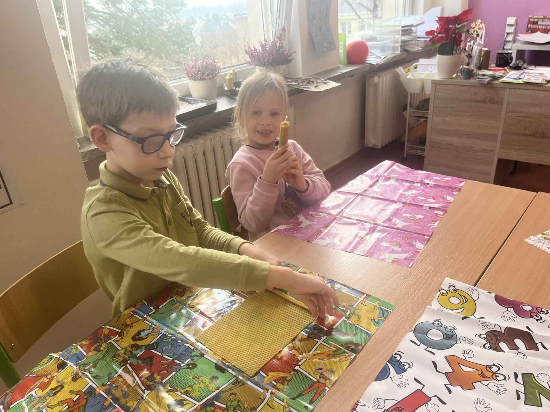Děti měly možnost vyzkoušet si, jak taková svíčka vzniká, co je k jejímu vytvoření potřeba a kolik trpělivosti i pečlivosti je s výrobou spojeno. U celé činnosti panovala příjemná atmosféra, nechyběla radost, zvědavé otázky ani nadšené reakce na hotové výrobky.