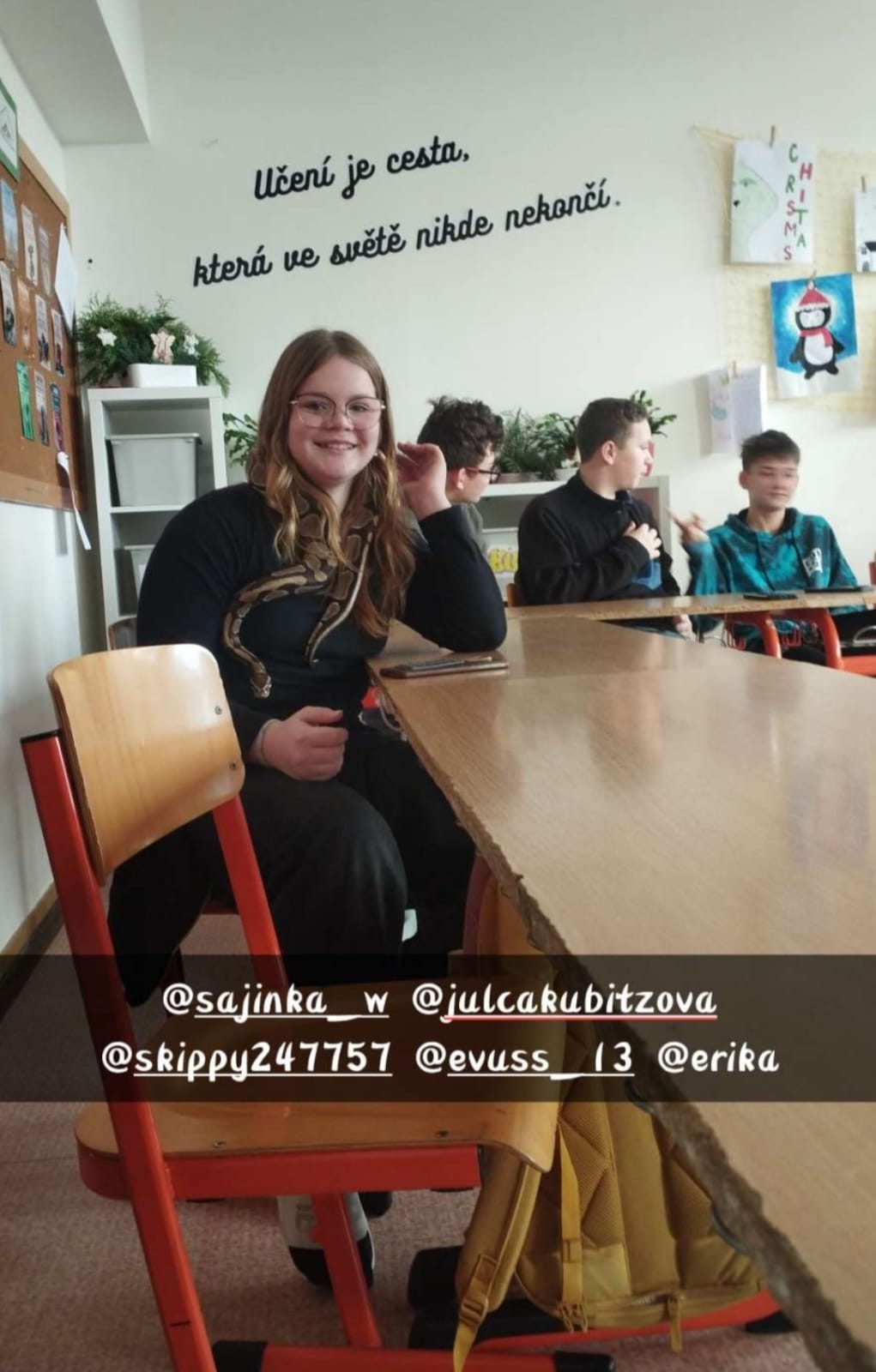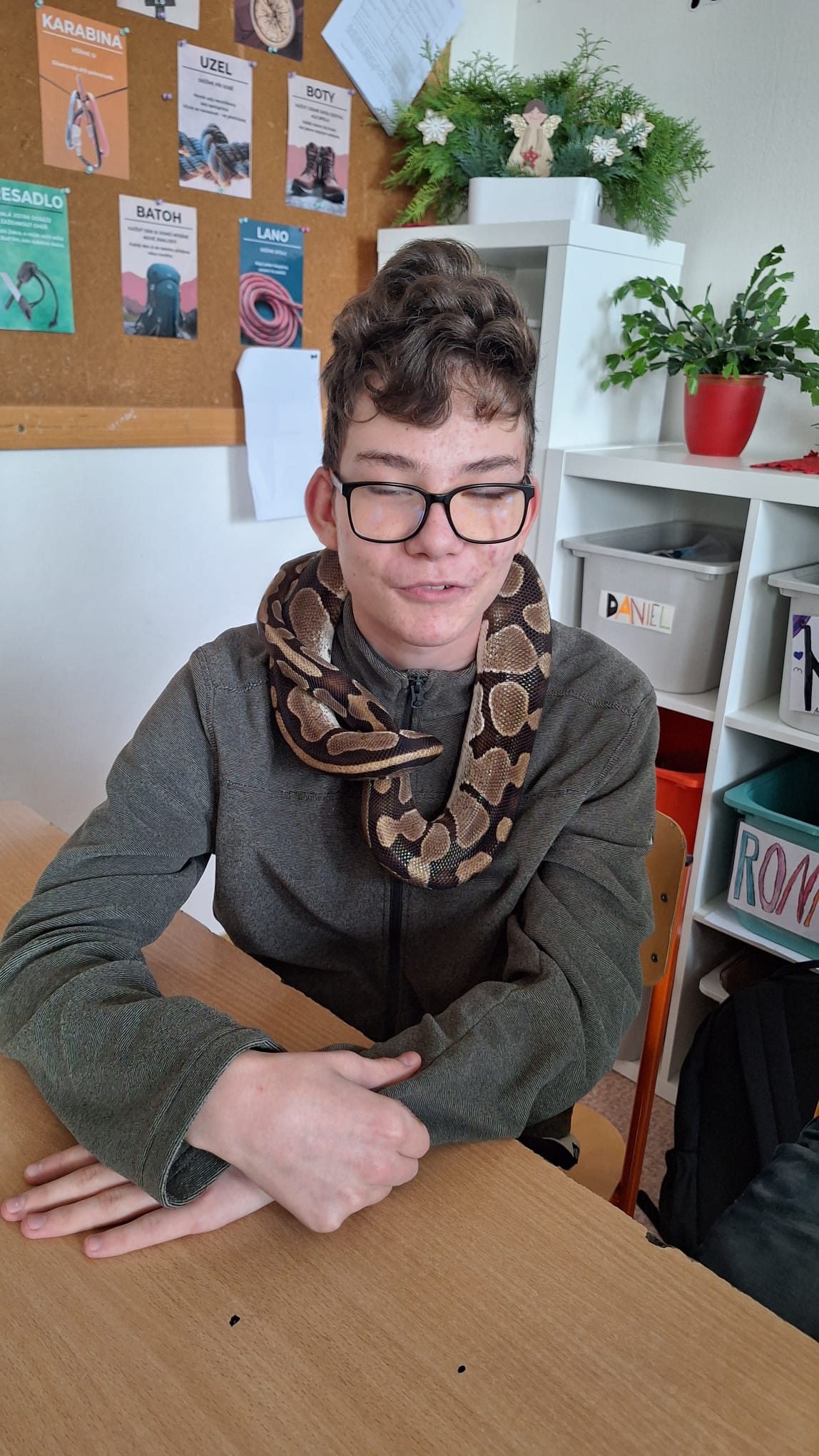 Dne 18. 12. se třídy 7. A a 7. B proměnily v místo, kde se příroda nečetla z učebnice, ale stála přímo před námi. Beseda na téma plazi nebyla o sezení a poslouchání – byla o odvaze, zvědavosti a zážitku.