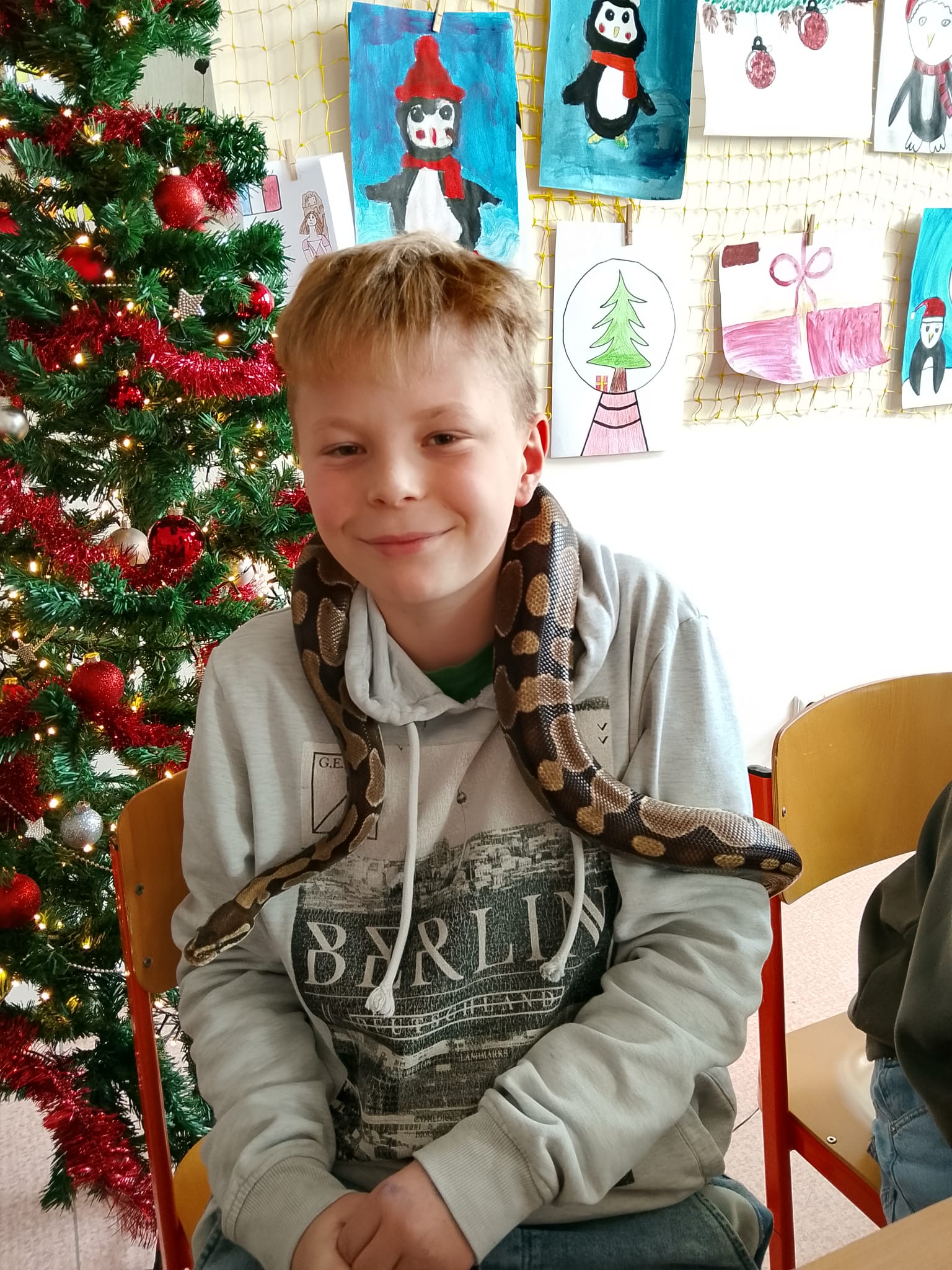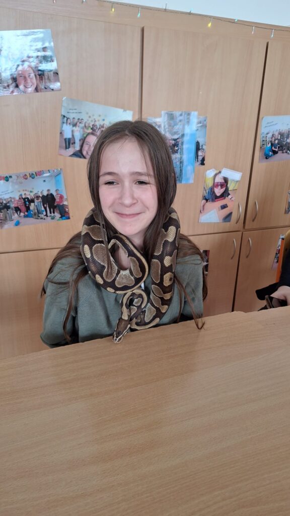 Žáci viděli želvy, agamu, krajtu i užovku červenou. Někteří si hada dali na krk, jiní si ho jen opatrně pohladili – a všichni sledovali s úžasem. Dozvěděli se spoustu zajímavostí.