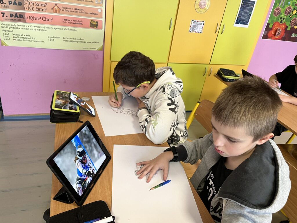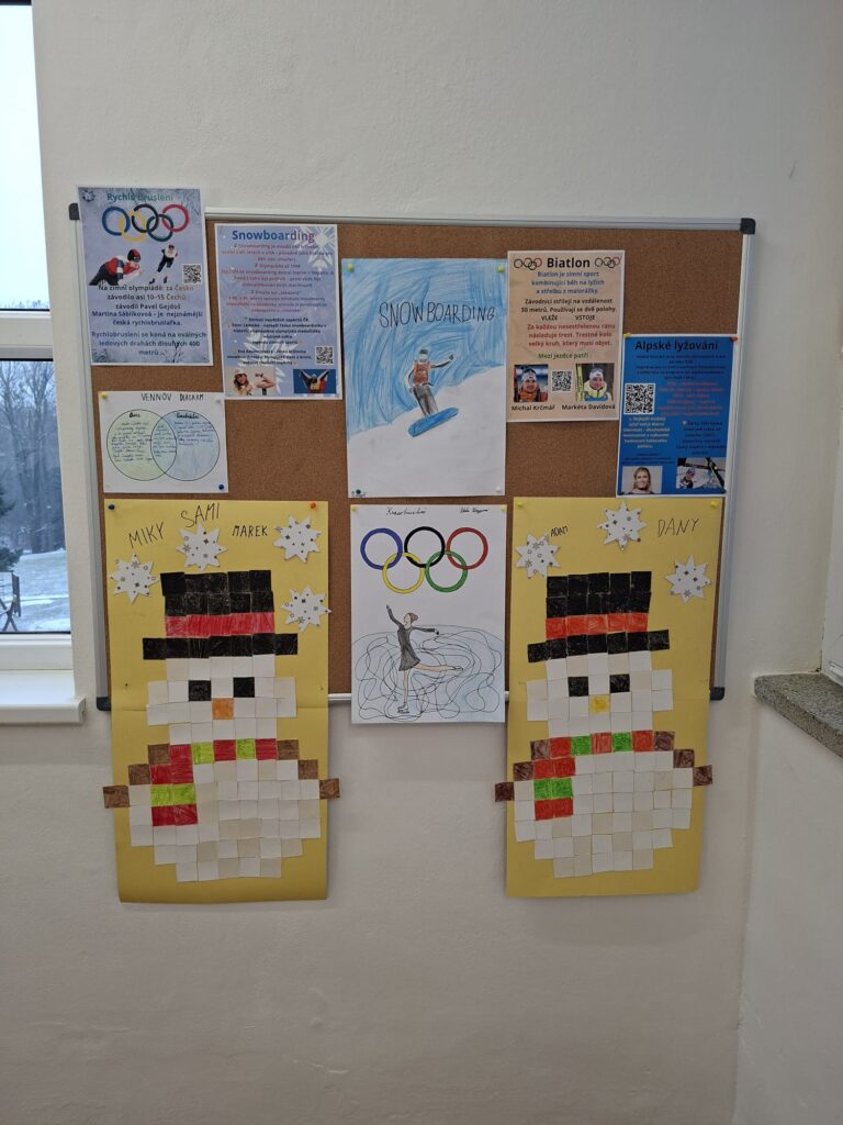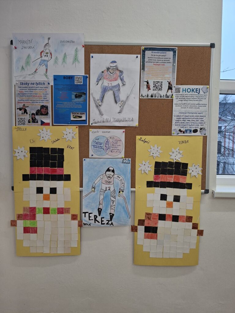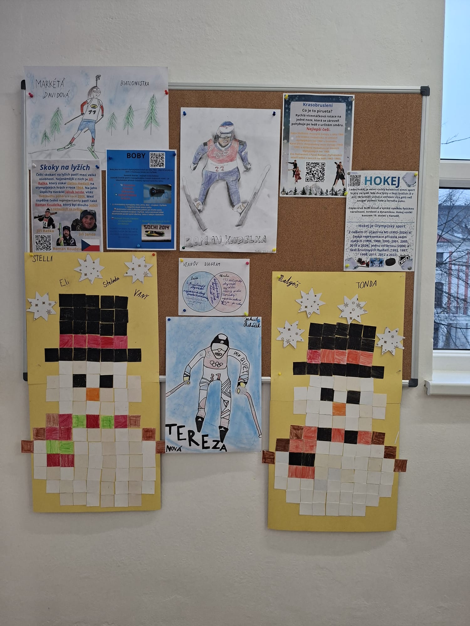 To vše zjišťovali žáci 5. B během týdenního projektu, kdy se toto téma prolínalo napříč všemi předměty. Nejen, že si děti na vlastní kůži vyzkoušely zimní sporty, ale naučily se také vytvořit QR kód, Google tabulku i dokument v Canvě, pracovaly s textem českým i anglickým, vyhledávaly důležité informace k tématu, diskutovaly o smyslu a poslání olympijských her a kreslily zimní sporty i naše úspěšné sportovce.