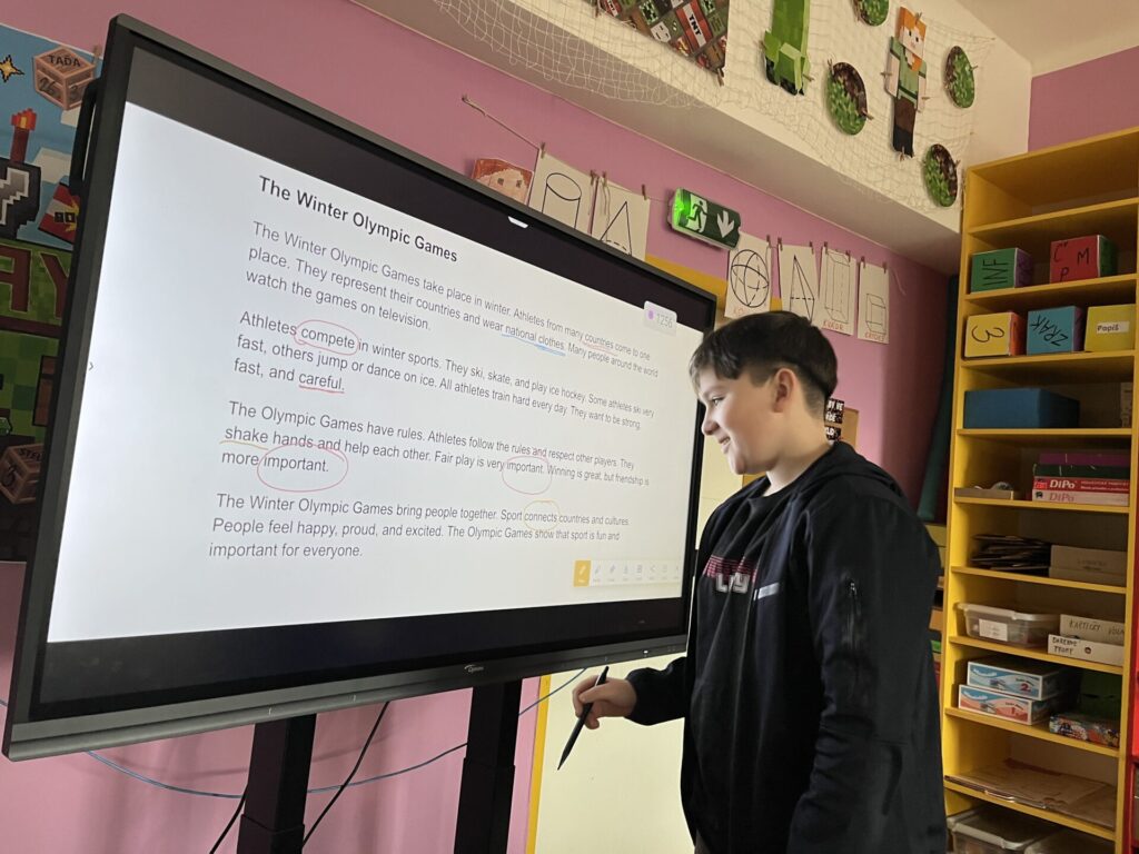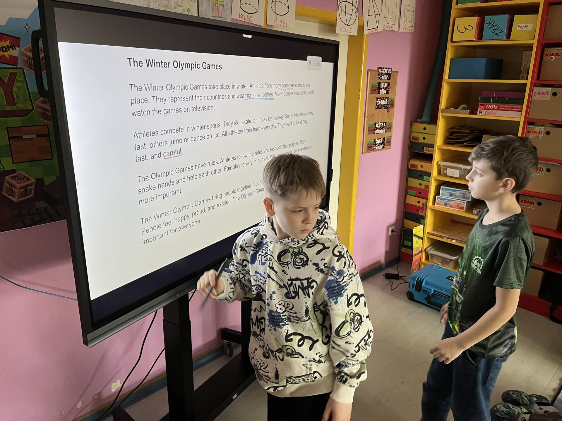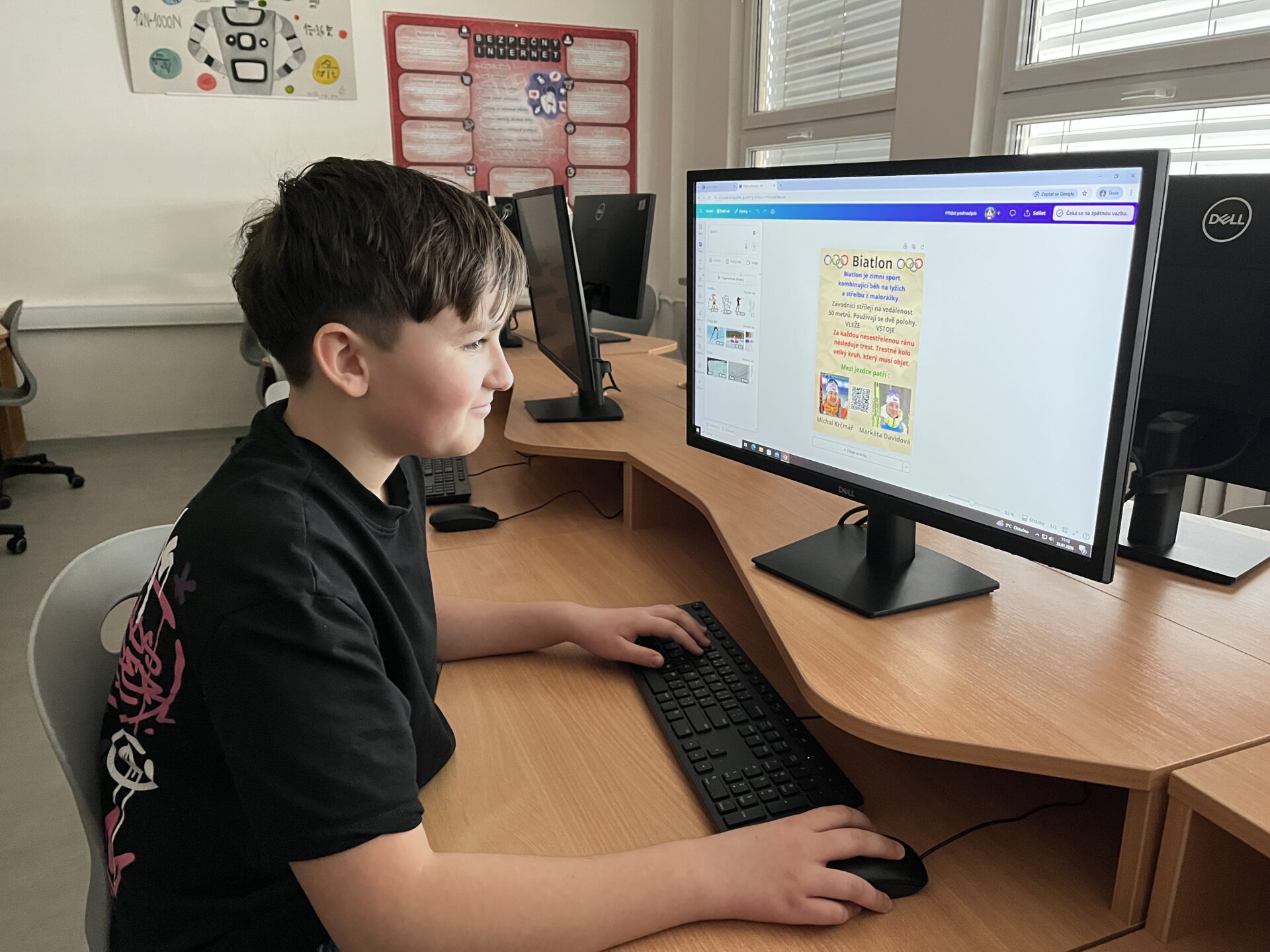 To vše zjišťovali žáci 5. B během týdenního projektu, kdy se toto téma prolínalo napříč všemi předměty. Nejen, že si děti na vlastní kůži vyzkoušely zimní sporty, ale naučily se také vytvořit QR kód, Google tabulku i dokument v Canvě, pracovaly s textem českým i anglickým, vyhledávaly důležité informace k tématu, diskutovaly o smyslu a poslání olympijských her a kreslily zimní sporty i naše úspěšné sportovce.