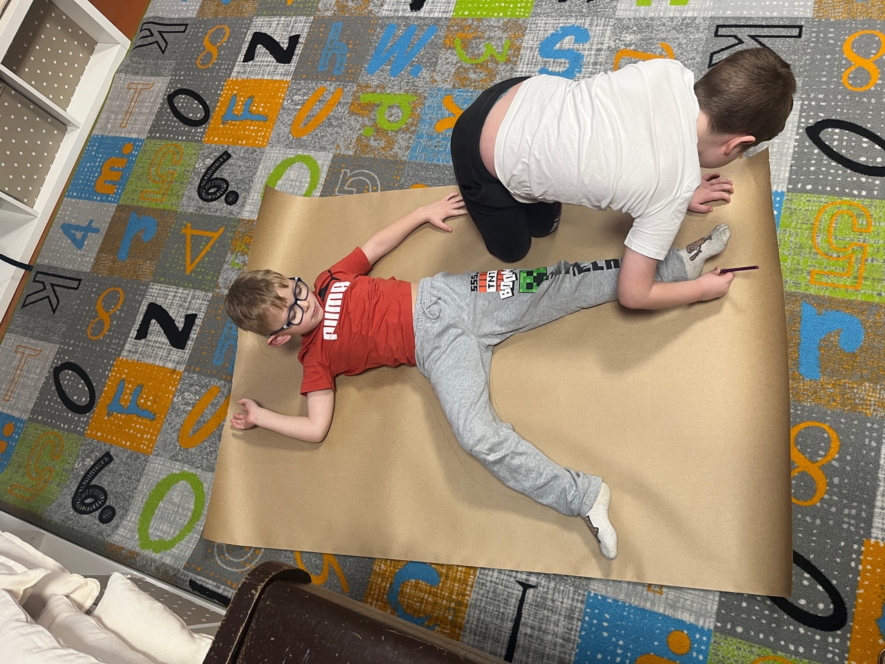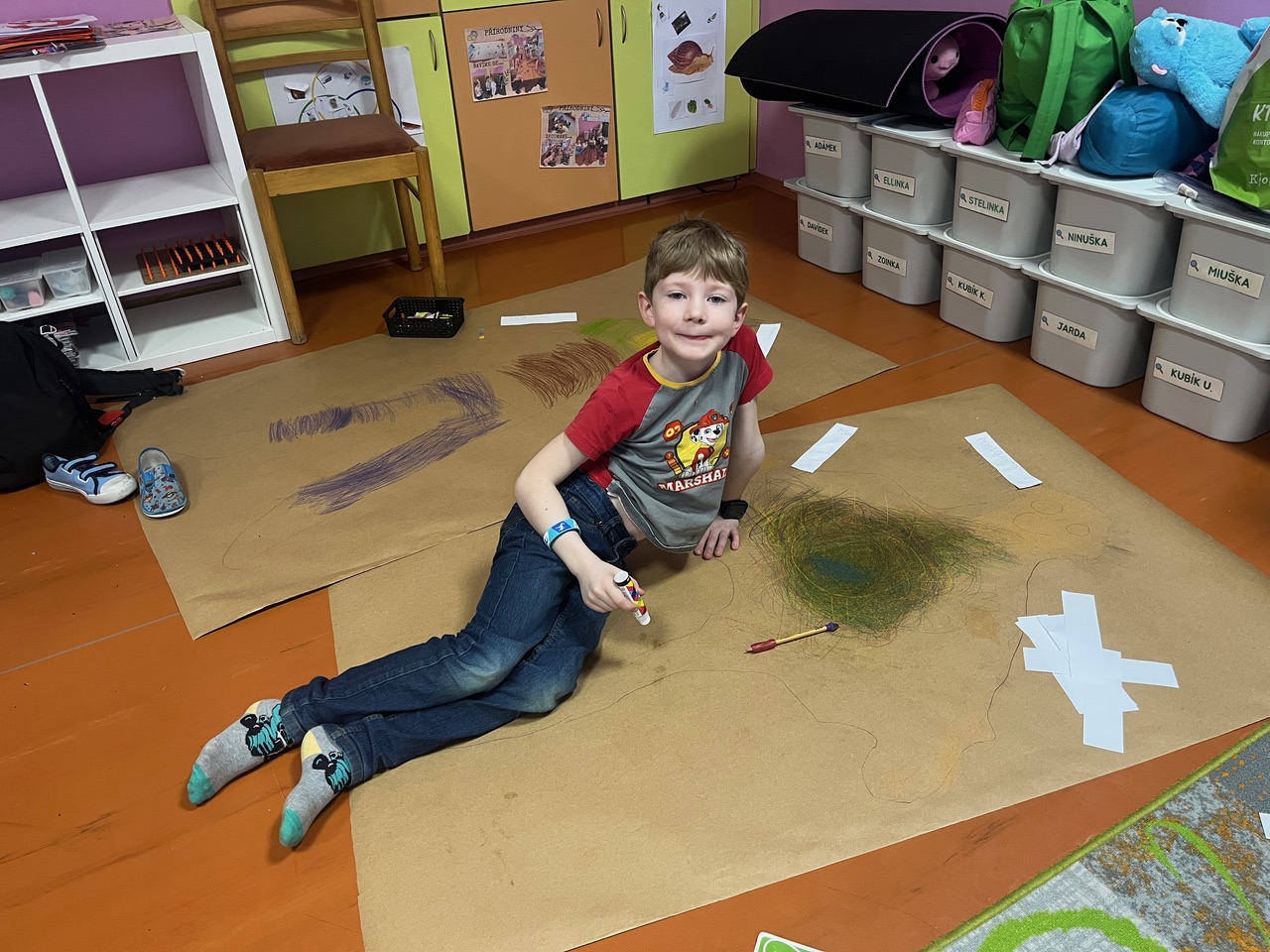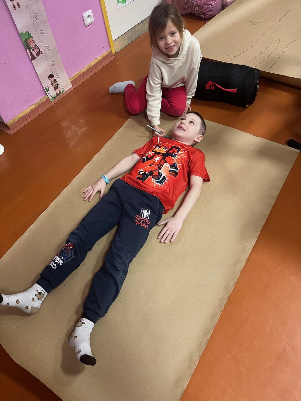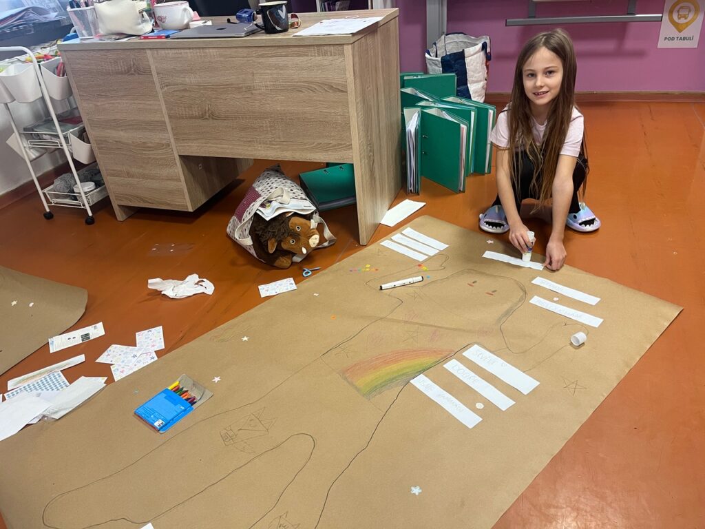 Každé dítě si vytvořilo postavu samo sebe v životní velikosti. Děti se navzájem obkreslily na velký papír a postavu postupně „plnily“ svým příběhem. K hlavě psaly, jak se učí, k srdci, jak se ve škole cítí, k ruce, co už zvládají jako školáci, a k nohám, kam by chtěly jít dál. Součástí byla i práce s portfoliem. Děti psaly vlastními slovy, s oporou jednoduchých otázek.