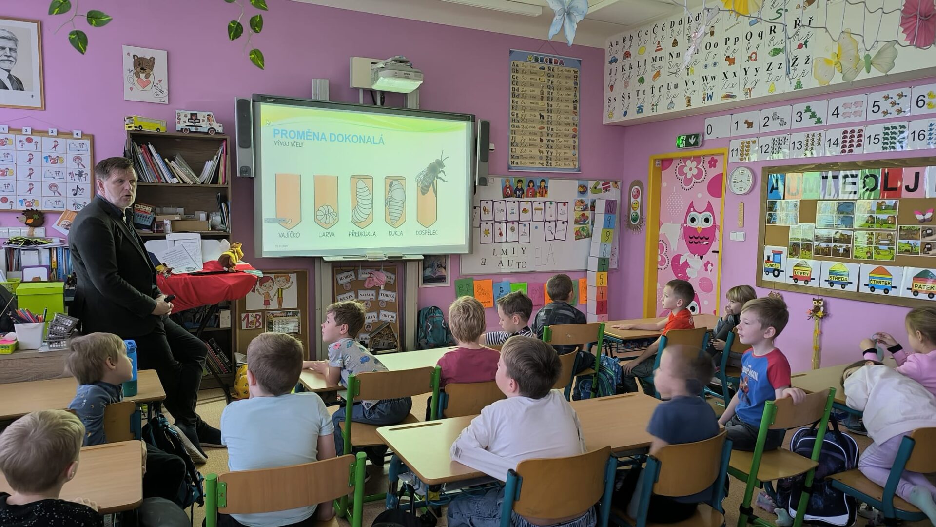 V naší škole se opět bádalo! Tentokrát se třídy 1. A, 1. B a 6. A vydaly na badatelskou výpravu do říše hmyzu pod vedením pana Rostislava Poláška, autora projektu Hmyzí pohádky. Program proběhl hravou, názornou i soutěžní formou a přinesl dětem spoustu nových poznatků o světě, který máme často doslova pod nohama.