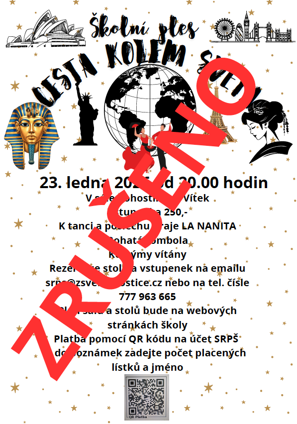 Sdružení rodičů a přátel školy ve Velkých Hošticích oznamuje, že školní ples, který se měl konat dne 23. 1. 2026, se z důvodu nízkého zájmu ruší.